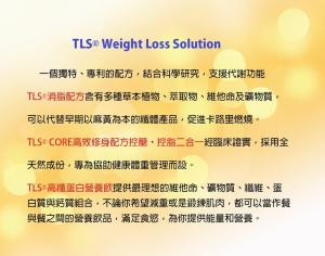 TLS消脂配方含有多種草本植物、萃取物、維他命及礦物質,同時促進卡路里燃燒(生熱作用)及脂肪燃燒(脂肪分解作用)。可有助壓抑你的食慾,同時協助維持代謝作用。