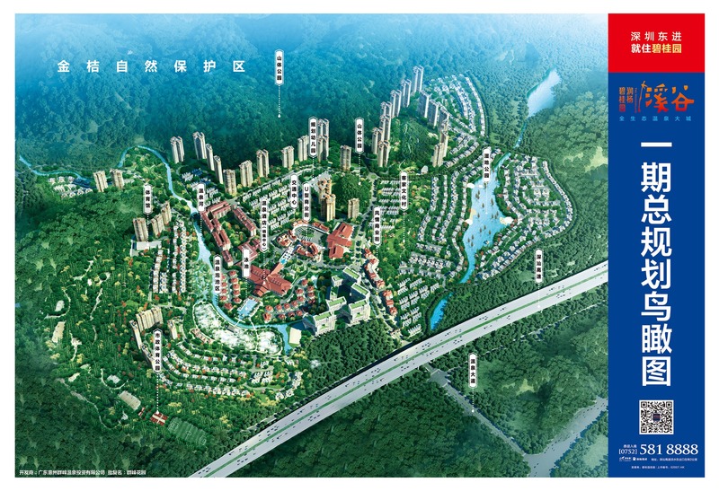 桂園潤楊溪谷,地處深圳大都市圈金桔自然保護區內,離深圳福田約60km的全配套生態溫泉大城,坐擁山、林、溪、穀等自然資源,尤以媲美華清池的天然偏矽酸溫泉就在專案內,遠負盛名。專案總占地約3000畝,建面約220萬平米,規劃上萬戶家庭,可容納數萬名業主,未來將打造成粵港澳大灣區的高端溫泉大城,項目距離惠州南站僅6公里,周邊4大高速環繞,且擁有豐盛的配套,碧桂園集團首家東南亞風情特色溫泉酒店便坐落於此,酒店負一樓香榭麗西餐廳、健身房、棋牌室等休閒娛樂配套現已營業,酒店中心園林近千平無邊際泳池、五大功能溫泉泡池區、造浪池、兒童遊樂池也已對外開放。未來社區內還規劃有環深超500班次交通中心、東南亞風情商業街、千人宴會中心、水杉濕地公園、山體公園、體育公園、綠色環湖跑道、風情商業街、雙語學校等城市級配套,是粵港澳大灣區不可多得的生態大城。 碧桂園潤楊溪谷於2016年6月份開發,規劃有溫泉入戶美墅、溫泉山景公寓、生態景觀洋房,目前在售產品有196-271㎡的溫泉入戶美墅,將來會分批推出35-67㎡的溫泉山景公寓,以及建築面積約85-272㎡的半山墅級洋房。交通狀況距離惠州南站約8公里;距離淡水東出口約2公里,惠大、沿海、潮莞、深汕、廣惠等多條高速環繞;距福田約60公里,龍崗約35公里,澳頭深水港約20公里,惠州平潭機場約40公里;社區自建約1.3萬平米交通中心,業主便捷來往惠州南及深圳。