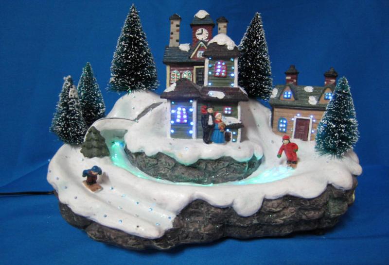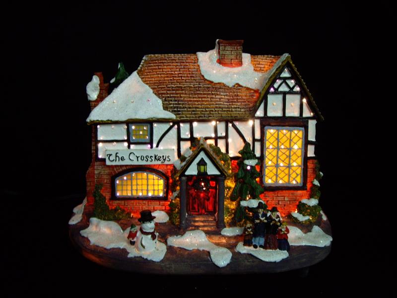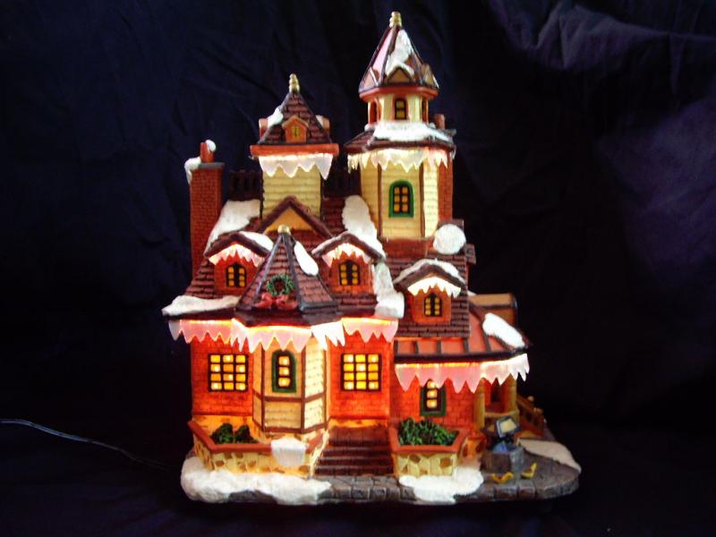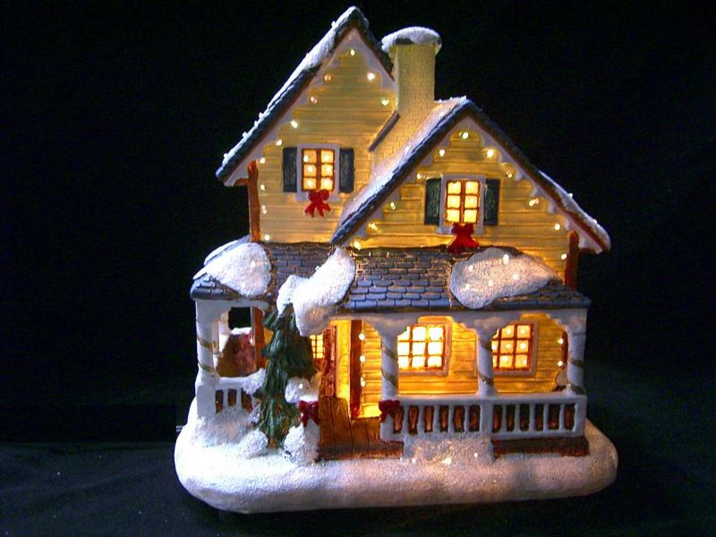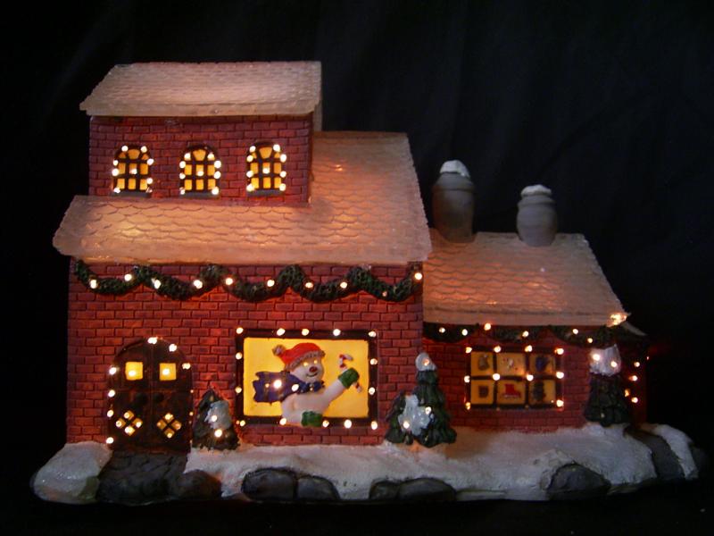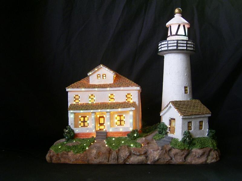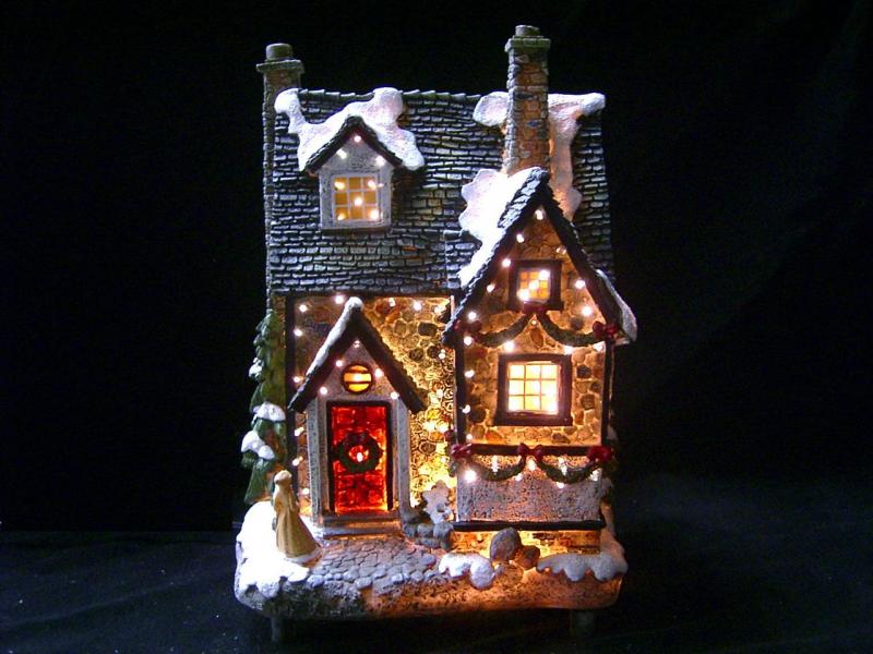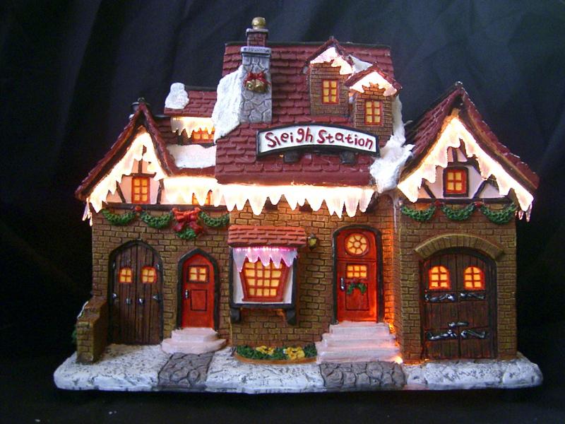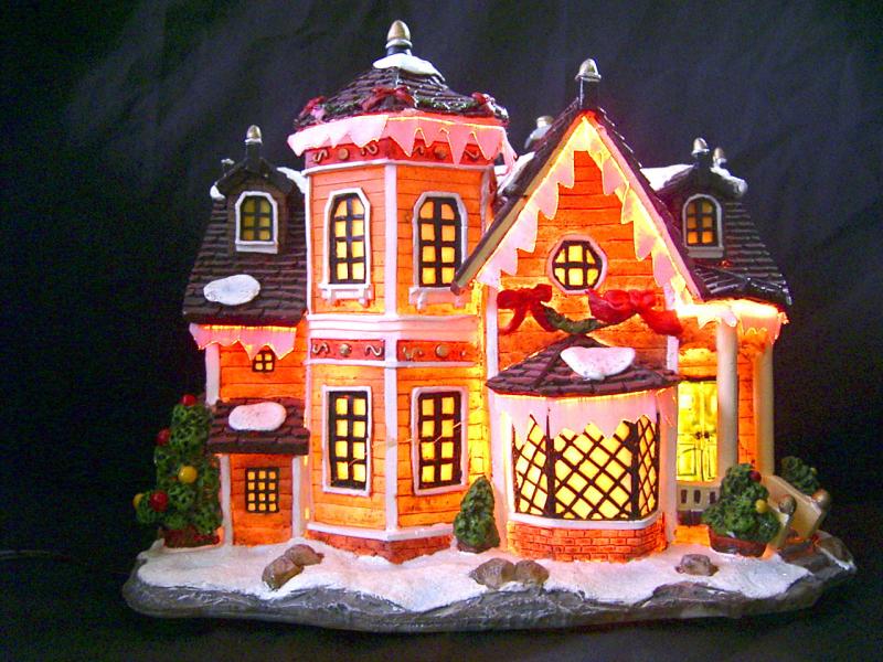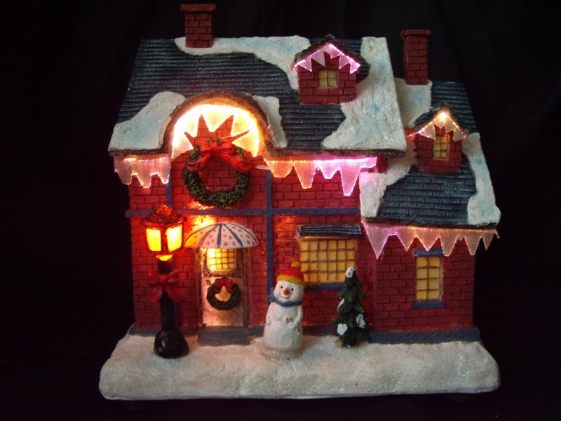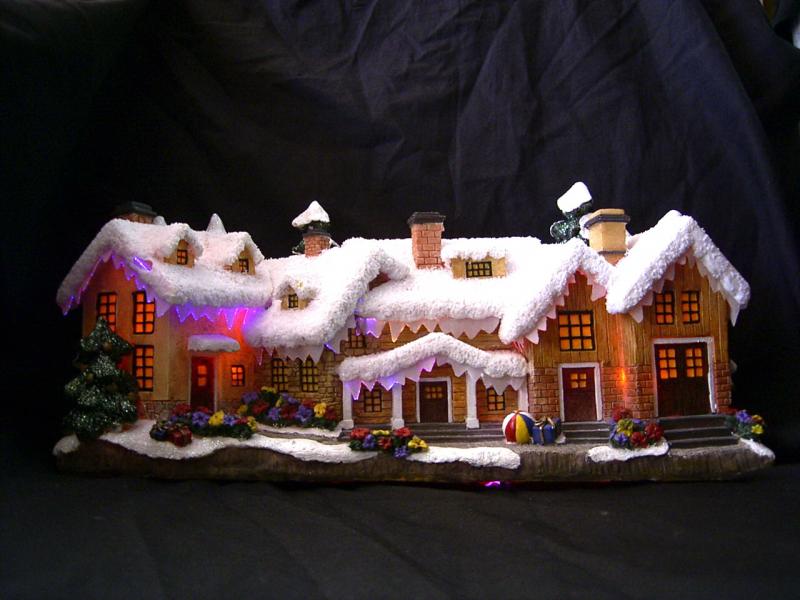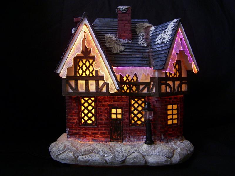 7" - 16" polyresin houses with fibre optic; A.C. adaptor / battery operated.