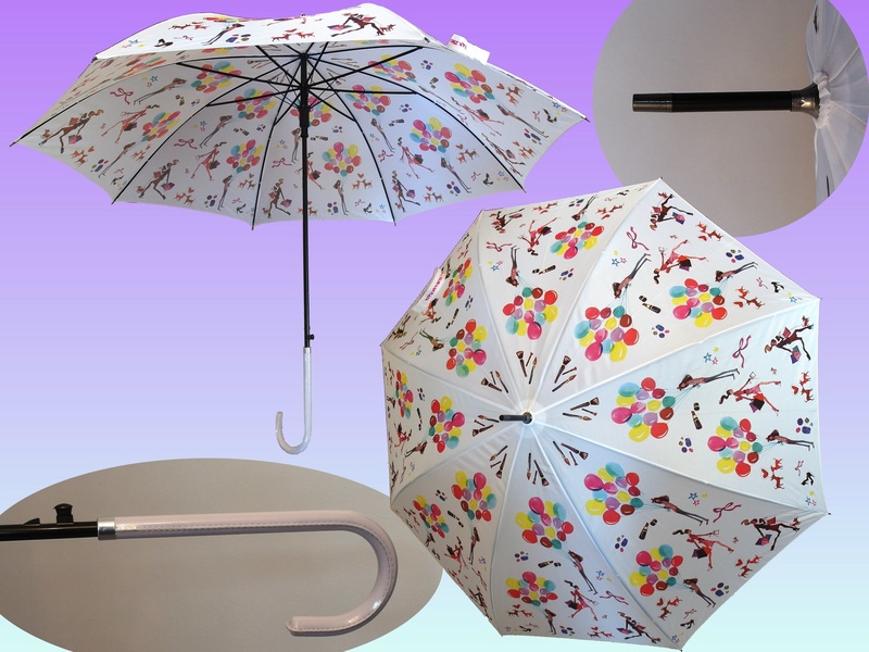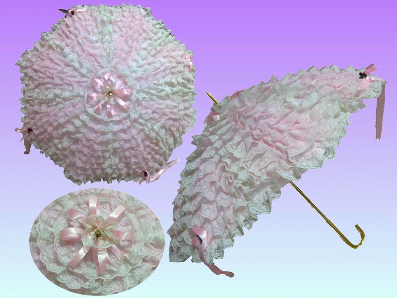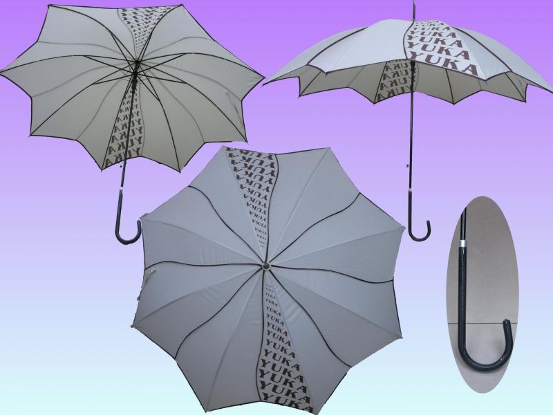 SUL03--(YUKA時裝)---23吋,自動,PG布,皮彎傘頭,白色蓮花傘.