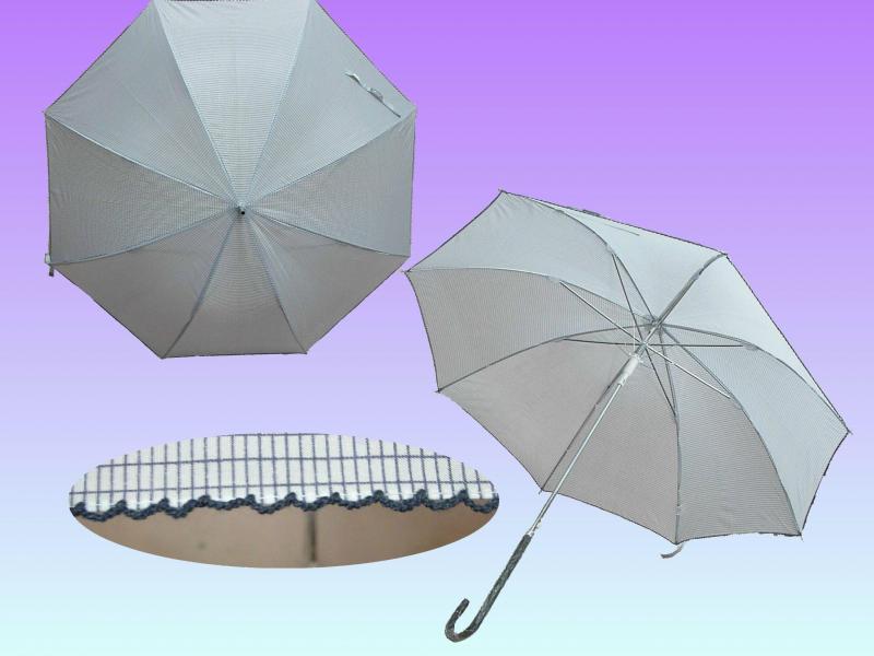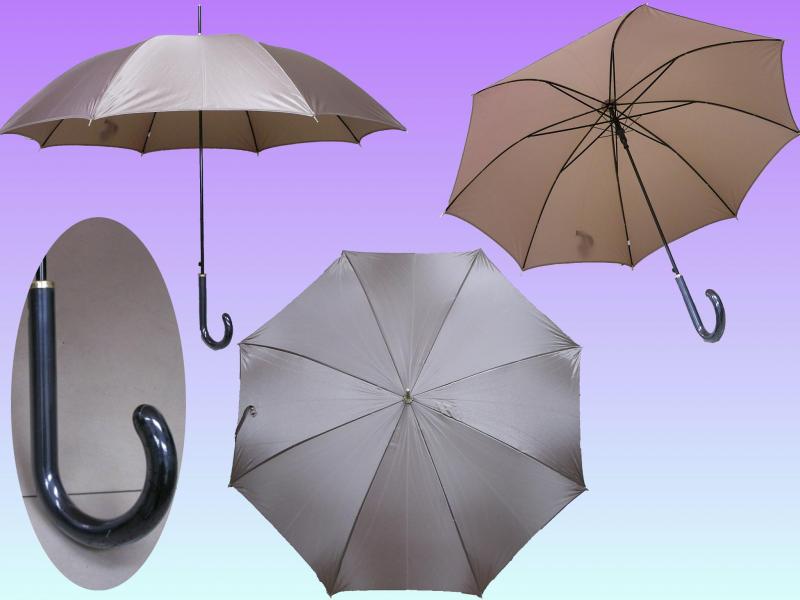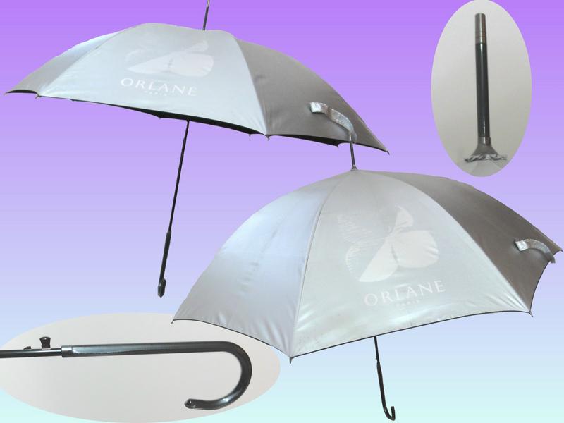 SUL16-- (ORLANE)--- 23吋, 8骨, 自動直傘, 黑鐵骨, 皮彎傘頭, 涤綸銀膠布
