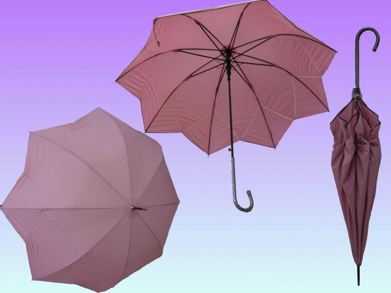 優點: 較三折傘耐用, 黑色電鍍銹, 可單手開雨傘.缺點: 攜帶不方便, 較三折雨傘重