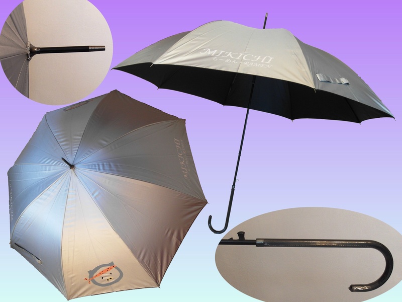 SUL17--(味吉拉麵館)--23吋,8骨,自動直傘,黑鐵骨,皮彎傘頭,涤綸銀膠布