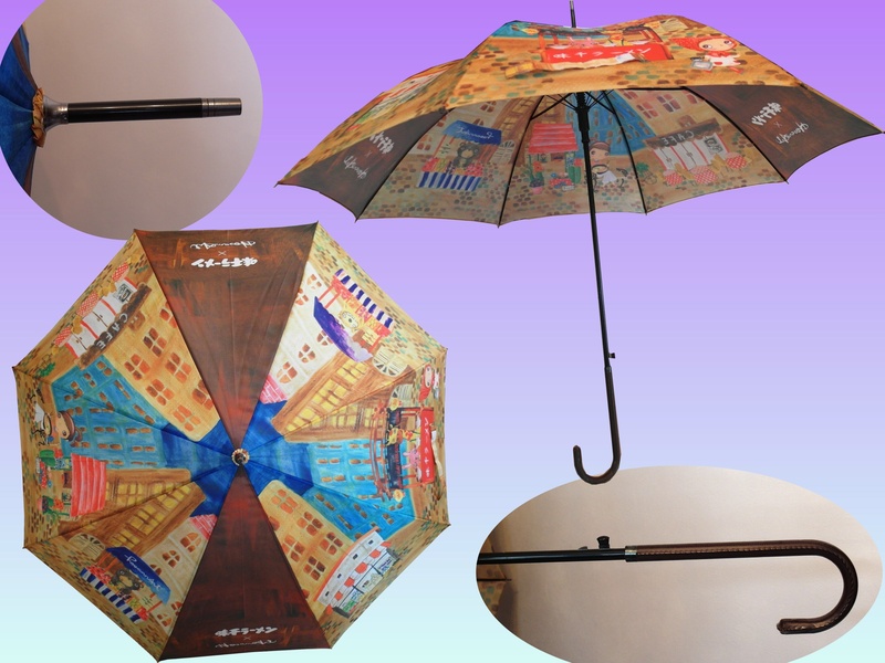 SUL19--(味千拉麵)--23吋,8骨,自動直傘, 黑鐵骨,皮彎傘頭,轉印PG布