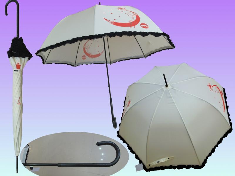 SUL02--(PPG 雪糕)---23吋,自動,PG布,拱型,花邊,皮彎傘頭,黑鐵骨直傘.