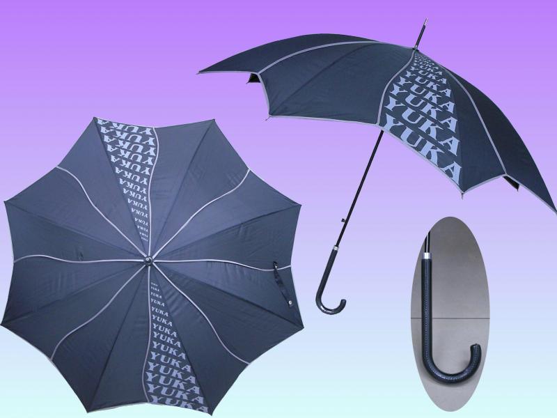 SUL05--(YUKA時裝)---23吋,自動,PG布,皮彎傘頭,黑色蓮花傘.