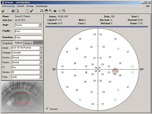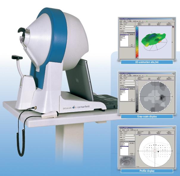 視野檢查是量度視覺周邊範圍的闊度及敏感度,有助於青光眼或其他病症的診斷。本中心配備由電腦操控的視野測量儀(Centerfield 2 Visual Field Analyzer),能對視網膜感光神經細胞的靈敏度作詳細分析,從而判斷視網膜及視神經的健康狀況。鑑於視野缺損有可能是永久性,及早發現及轉介治療,可大大減低視覺缺損的程度。
