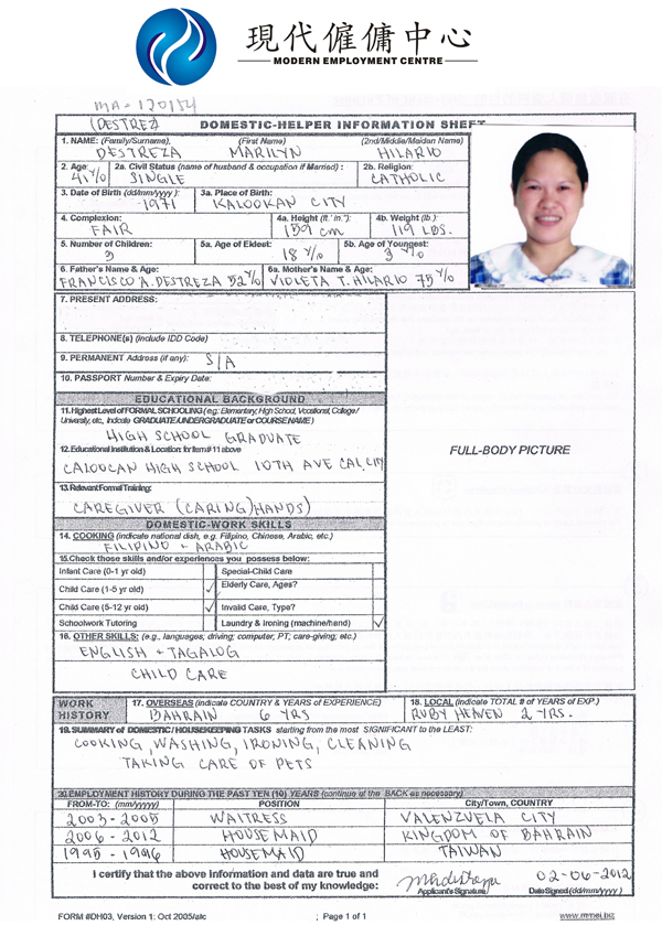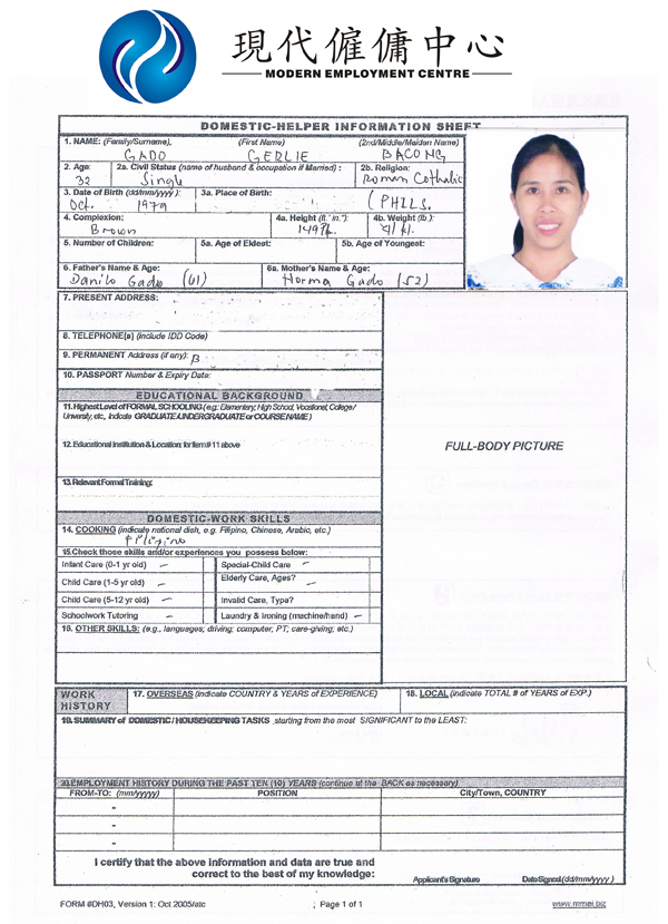 選定女傭後,請致電 23285626 或 688 388 22,本公司將會專人送上女傭詳細資料