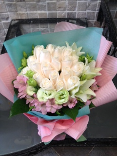 A87 10支玫瑰、百合連襯花