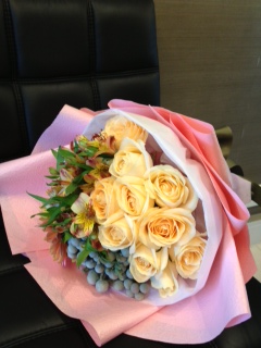 A82 20支香檳玫瑰、百合、桔梗