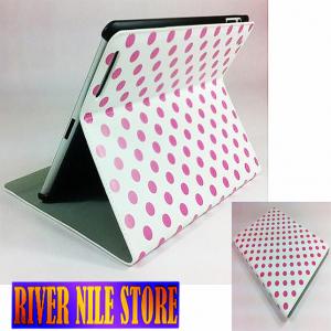 IPAD6009 圓點三檔調節保護套-白底粉紅點