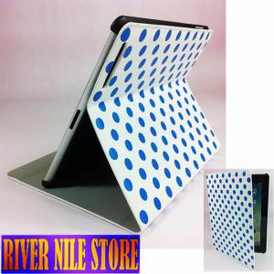 IPAD6009 圓點三檔調節保護套-白底粉藍點