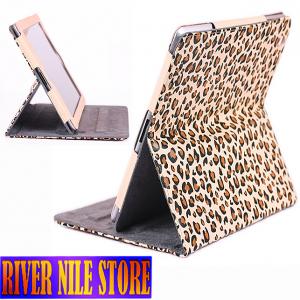 IPAD6012 豹紋三檔支架保護套-杏底豹紋