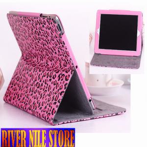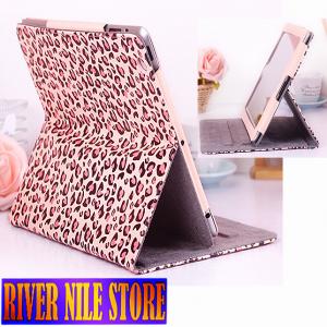 IPAD6012 豹紋三檔支架保護套-粉底粉豹紋
