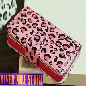 IPH4015 豹紋可插咭片保護套-玫紅色