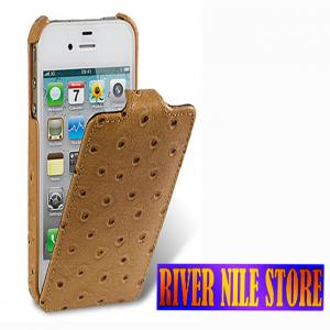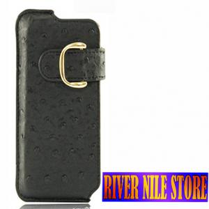 IPH4022 左右開鴕鳥紋真皮保護套-黑色