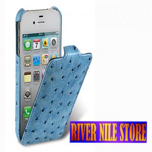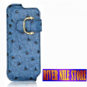 IPH4022 左右開鴕鳥紋真皮保護套-藍色