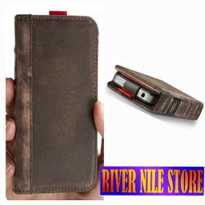 IPH4021 復古可插咭片錢包式真牛皮套-啡色