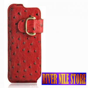 IPH4022 左右開鴕鳥紋真皮保護套-紅色