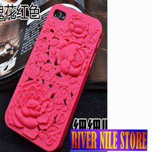 IPH4027 立體浮雕玫瑰花保護殼-紅色