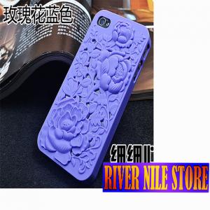 IPH4027 立體浮雕玫瑰花保護殼-深藍色