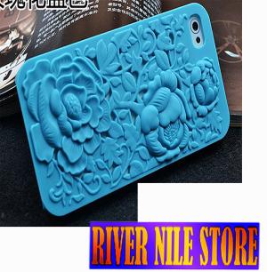 IPH4027 立體浮雕玫瑰花保護殼-淺藍色