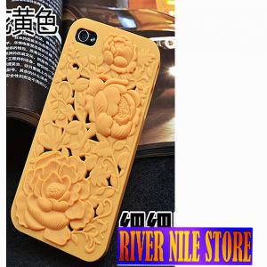 IPH4027 立體浮雕玫瑰花保護殼-黃色
